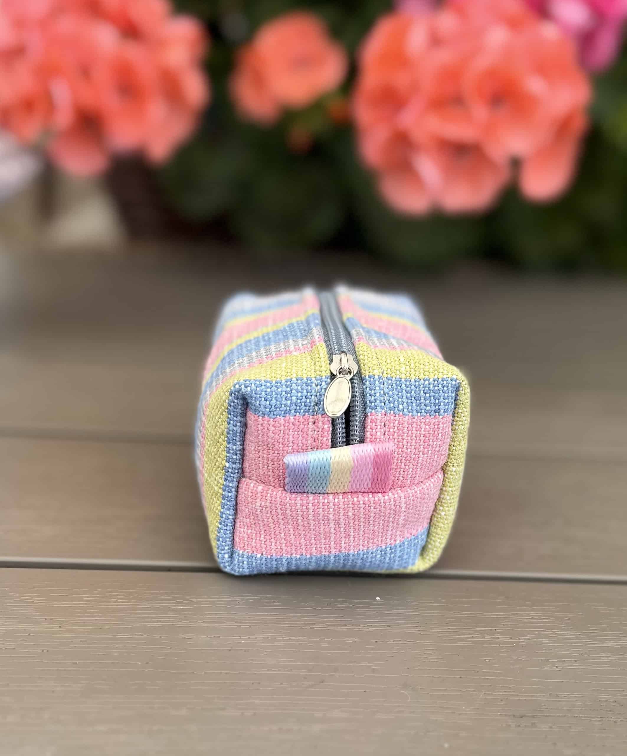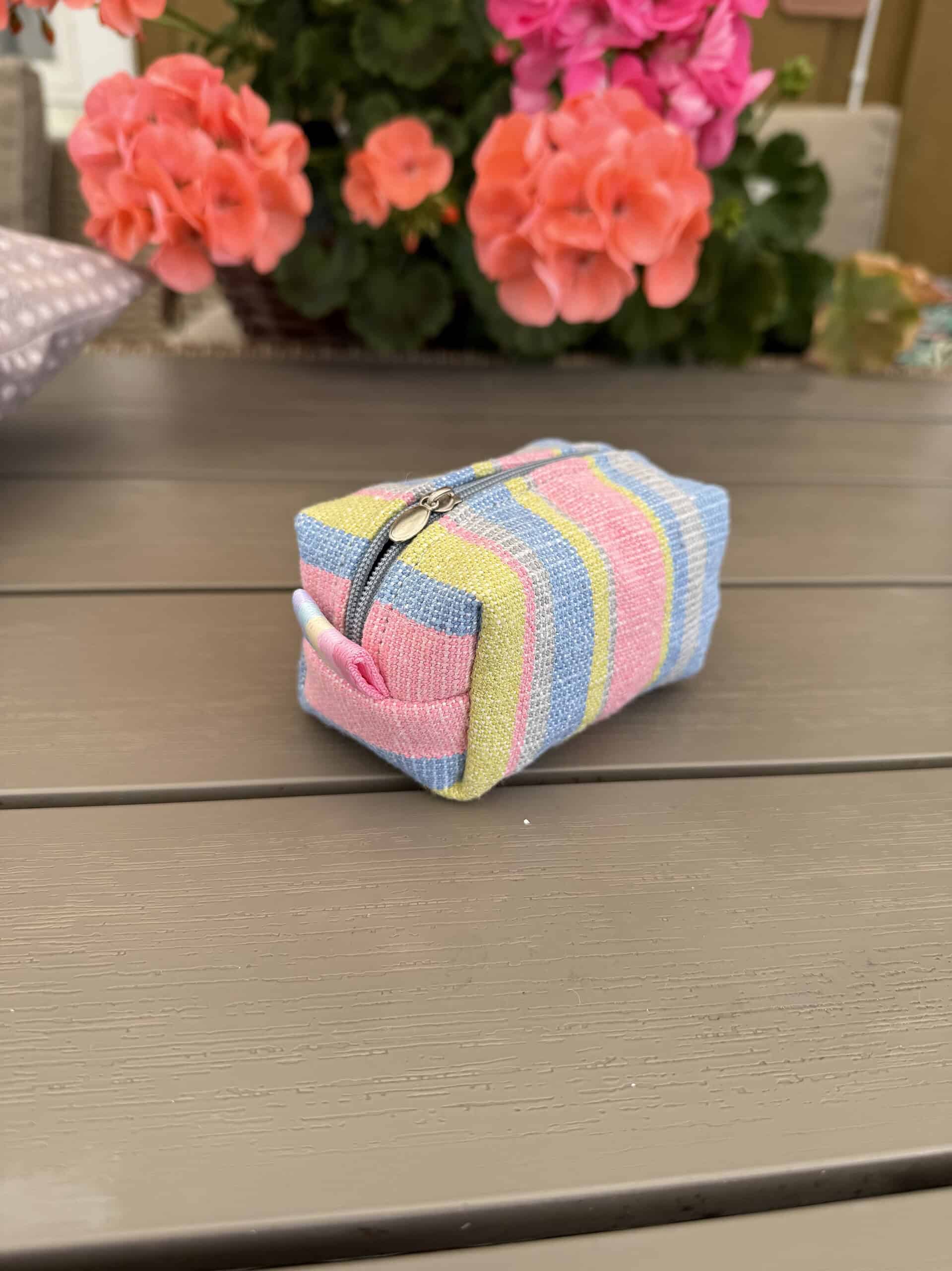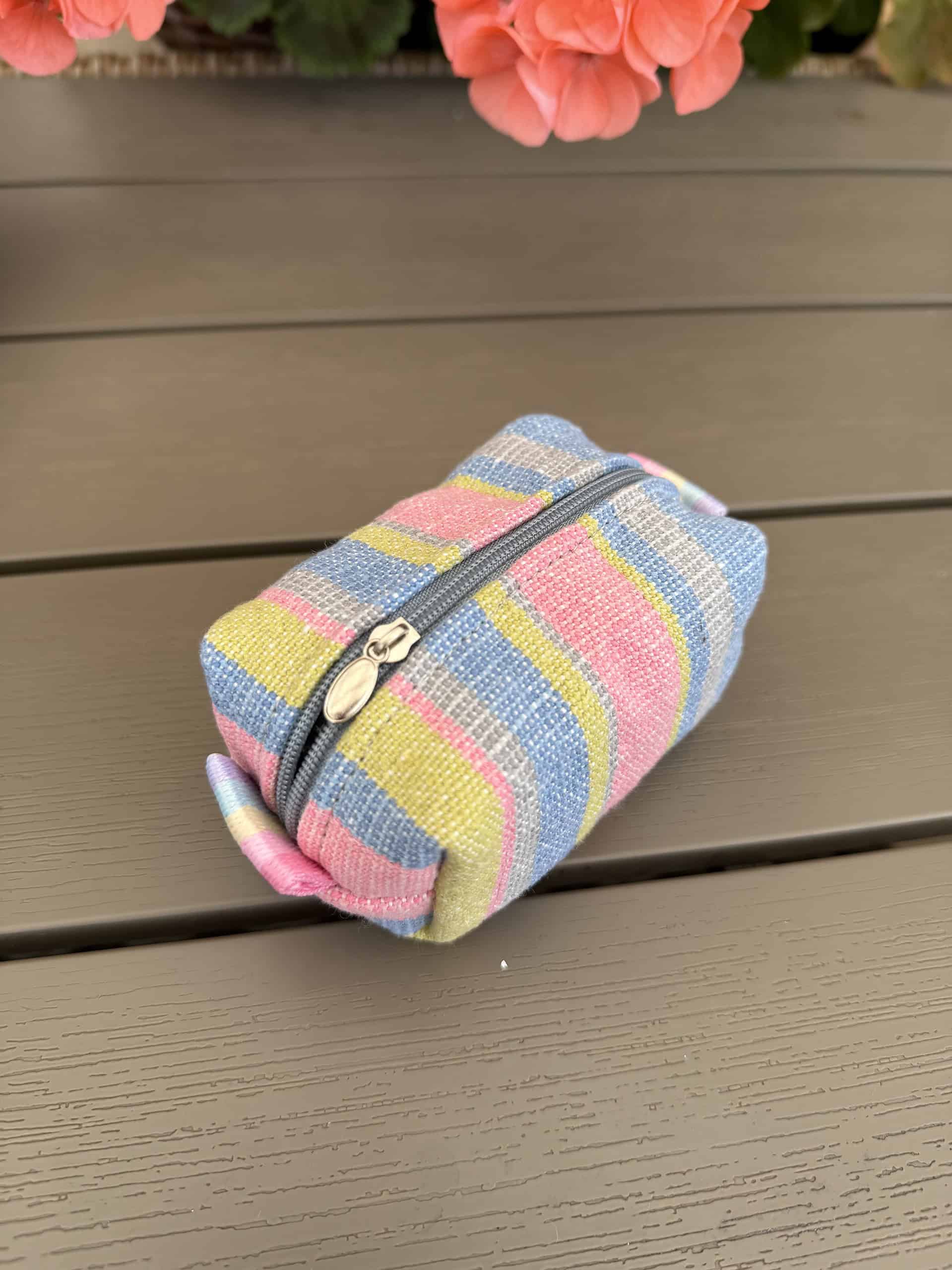 Unik necessär sydd av återbrukad löpare (hemvävd duk).
