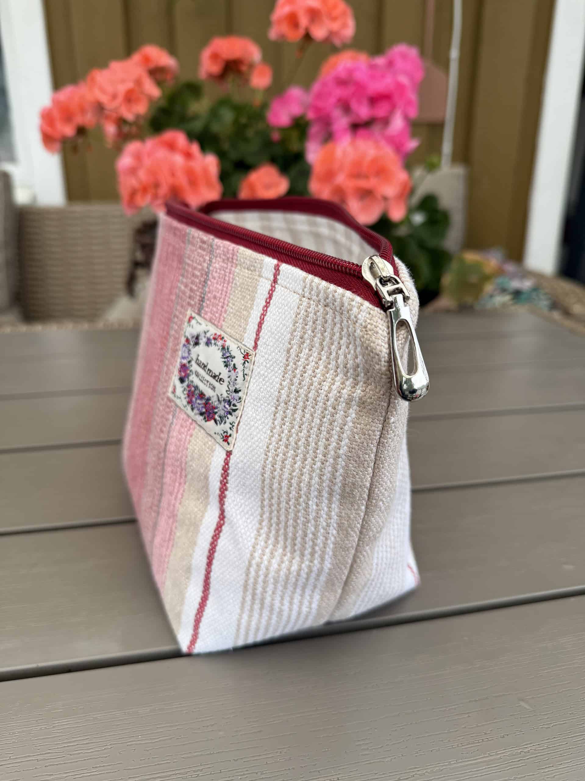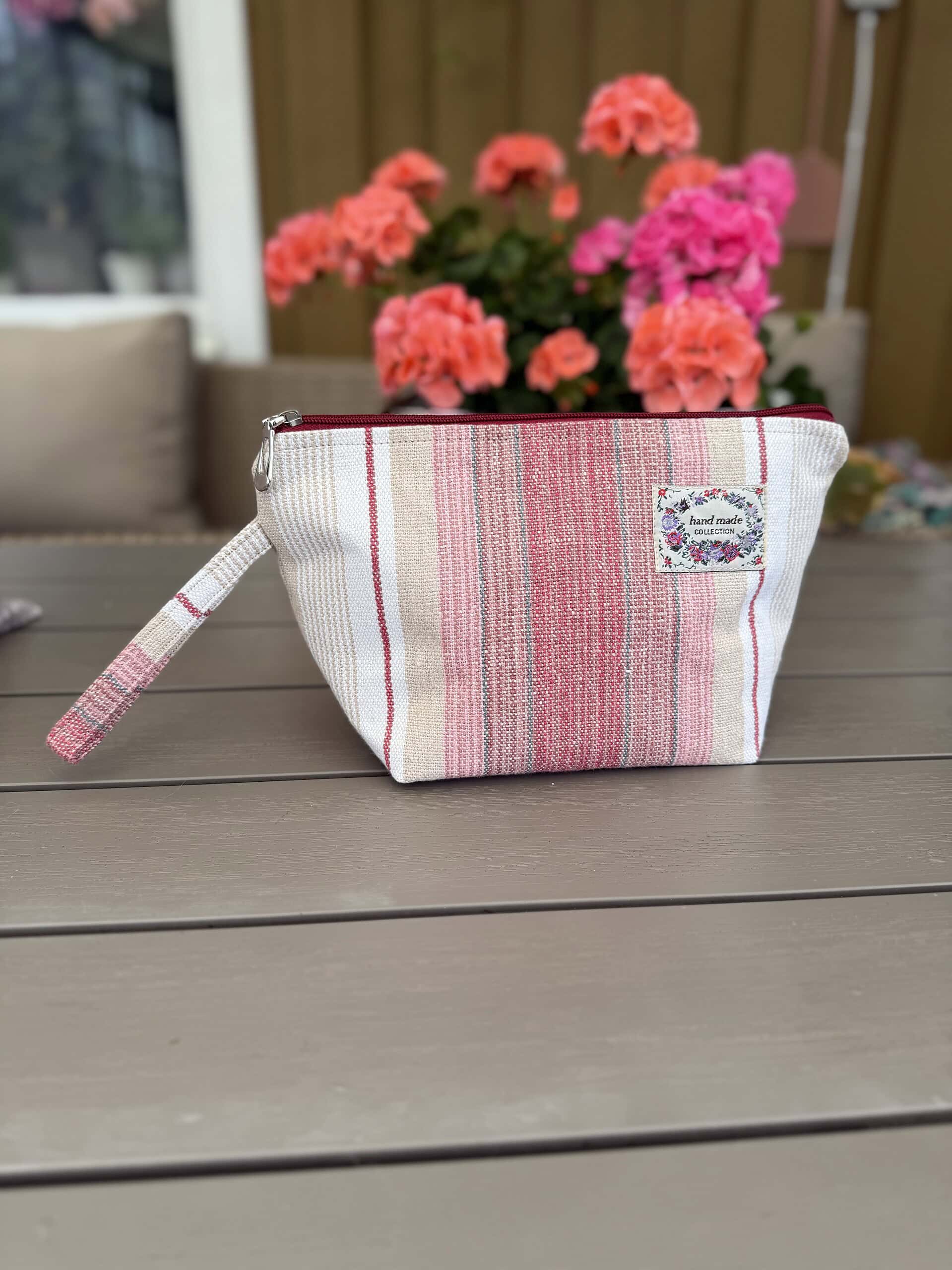 Unik necessären av återbrukad löpare (hemvävd duk).