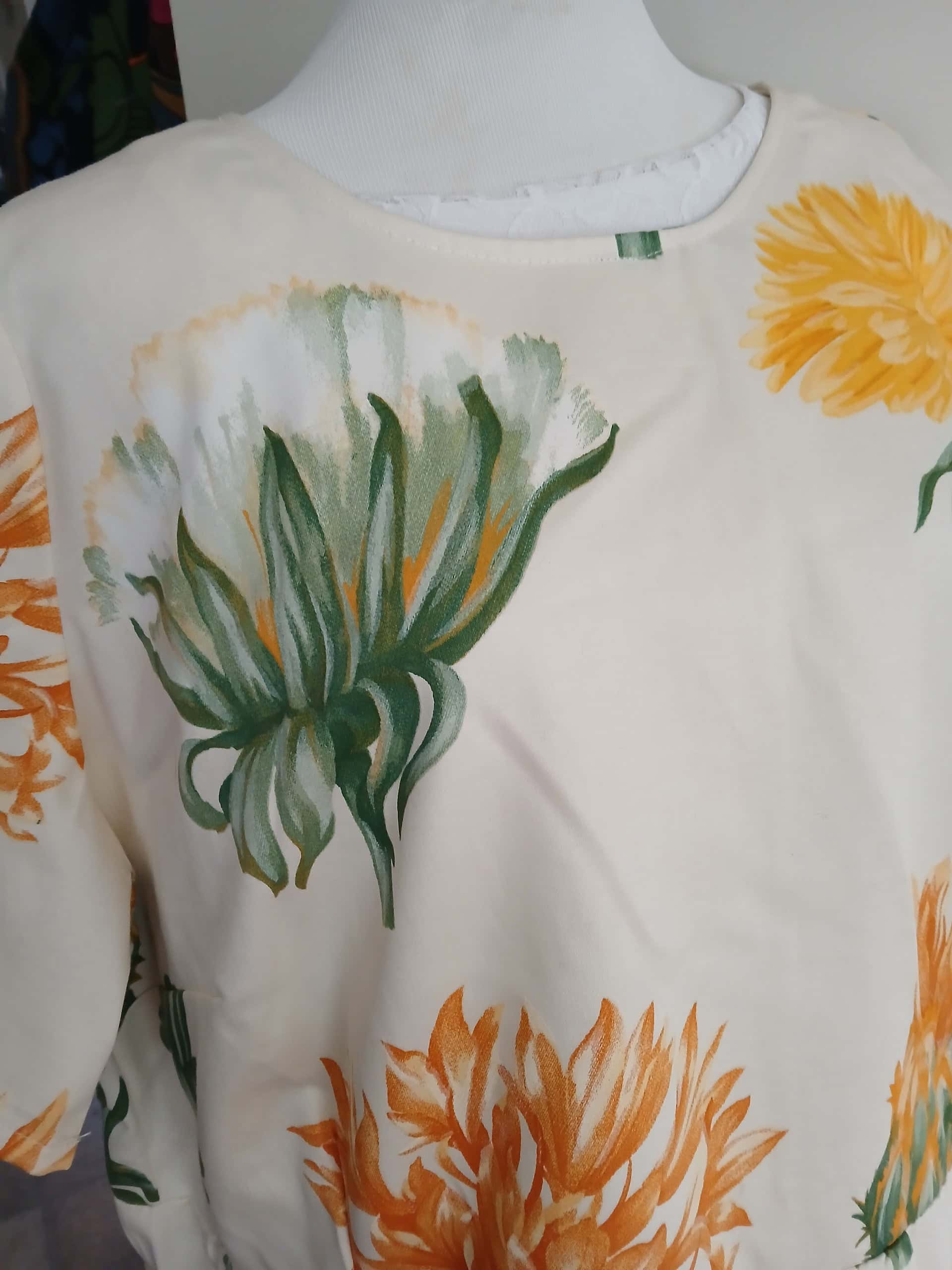 Unik tunika i lite kraftigare bomull. Kort ärm och 1 ficka. Finns 1.